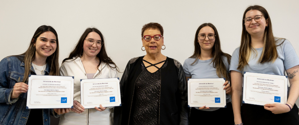 Félicitations à Roxanne, Karla Maria, Élodie et Audrey, prix Coup de cœur du jury dans la catégorie Baccalauréat en enseignement en adaptation scolaire